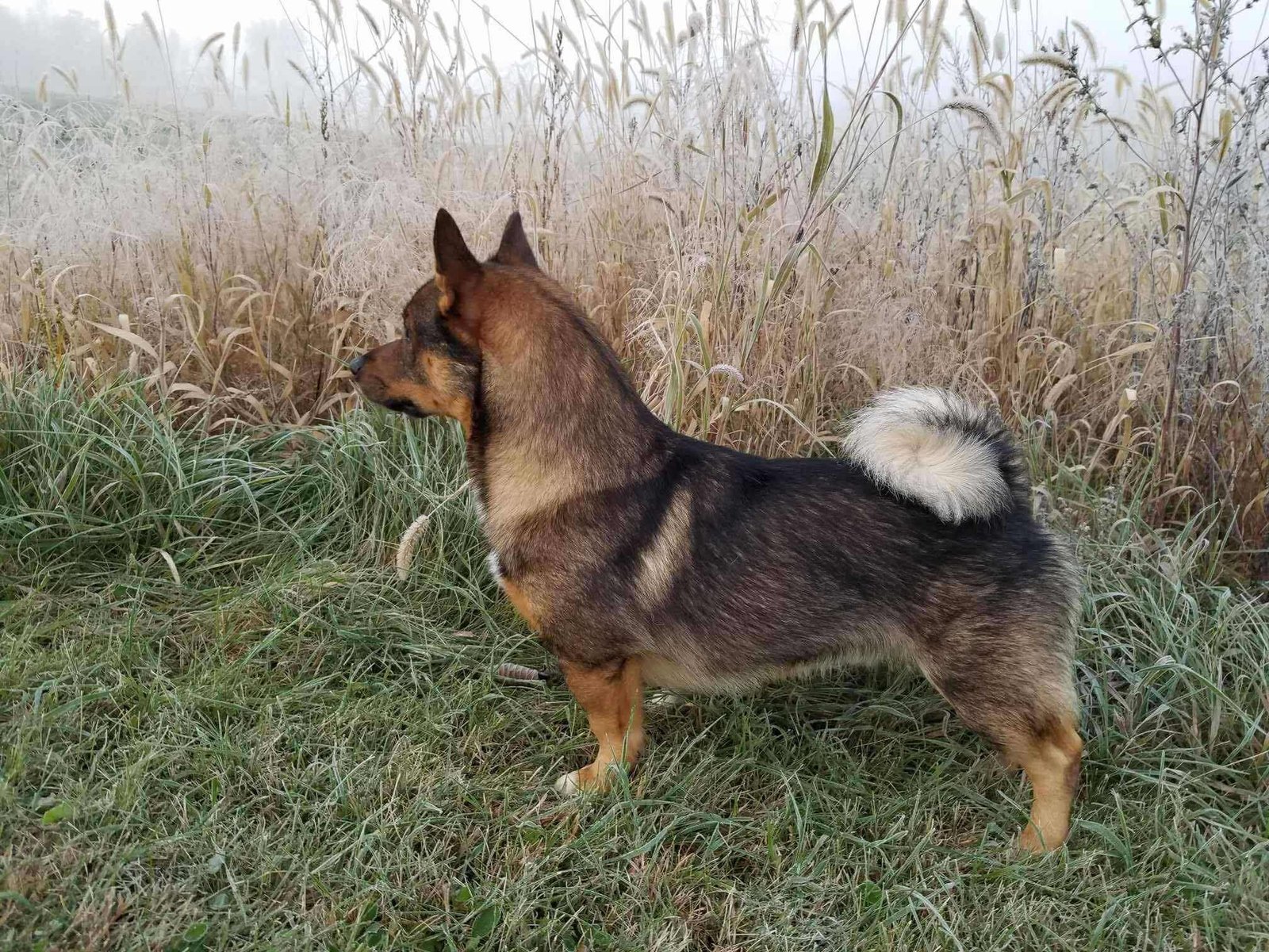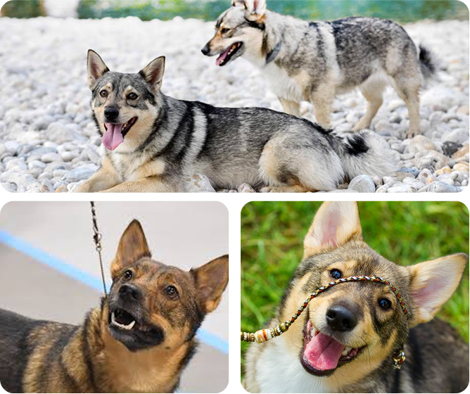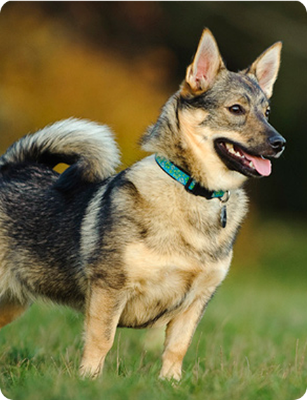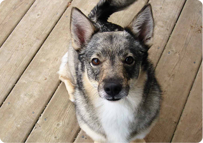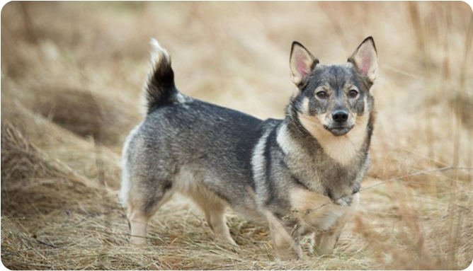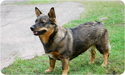 The Swedish Vallhund (SV) is a very old Spitz-type breed known since the time of the Vikings. For centuries the SV has been kept as a farm dog and used for herding cattle. The SV is a small, powerful, fearless, sturdily built Spitz herding dog. The correct relationship of height to length of body is 2:3. The SV has a wedge-shaped head, prick ears, and a close-fitting hard coat of medium length and sable coloring. The double coat and the characteristic “harness markings” are essential features of this breed. Tail may be natural (long, stub, or bob) or docked. The appearance of the Swedish Vallhund conveys intelligence, alertness and energy. Balance, outline, temperament and movement are of overriding importance. The SV is a thoroughly sound animal, versatile in its desire to do traditional herding or with proper training compete in companion events such as obedience, tracking and agility, and/or serve as a family companion.